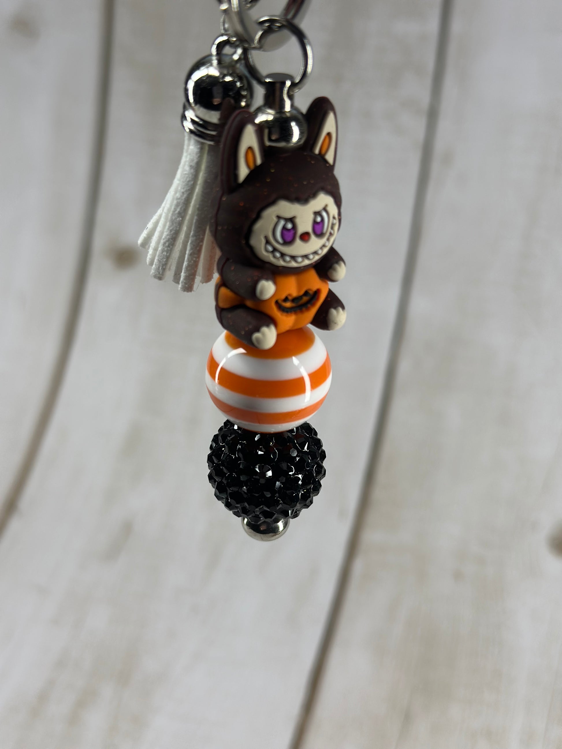 "Add a pop of quirkiness to your keys with our LaBuBu keychain! Featuring a playful silicone labubu charm and 20mm vibrant orange, black, and white bubblegum beads, it's bound to catch some attention. Plus, the stainless steel keychain and leather tassel make it both stylish and durable. (Note: keys not included!)"