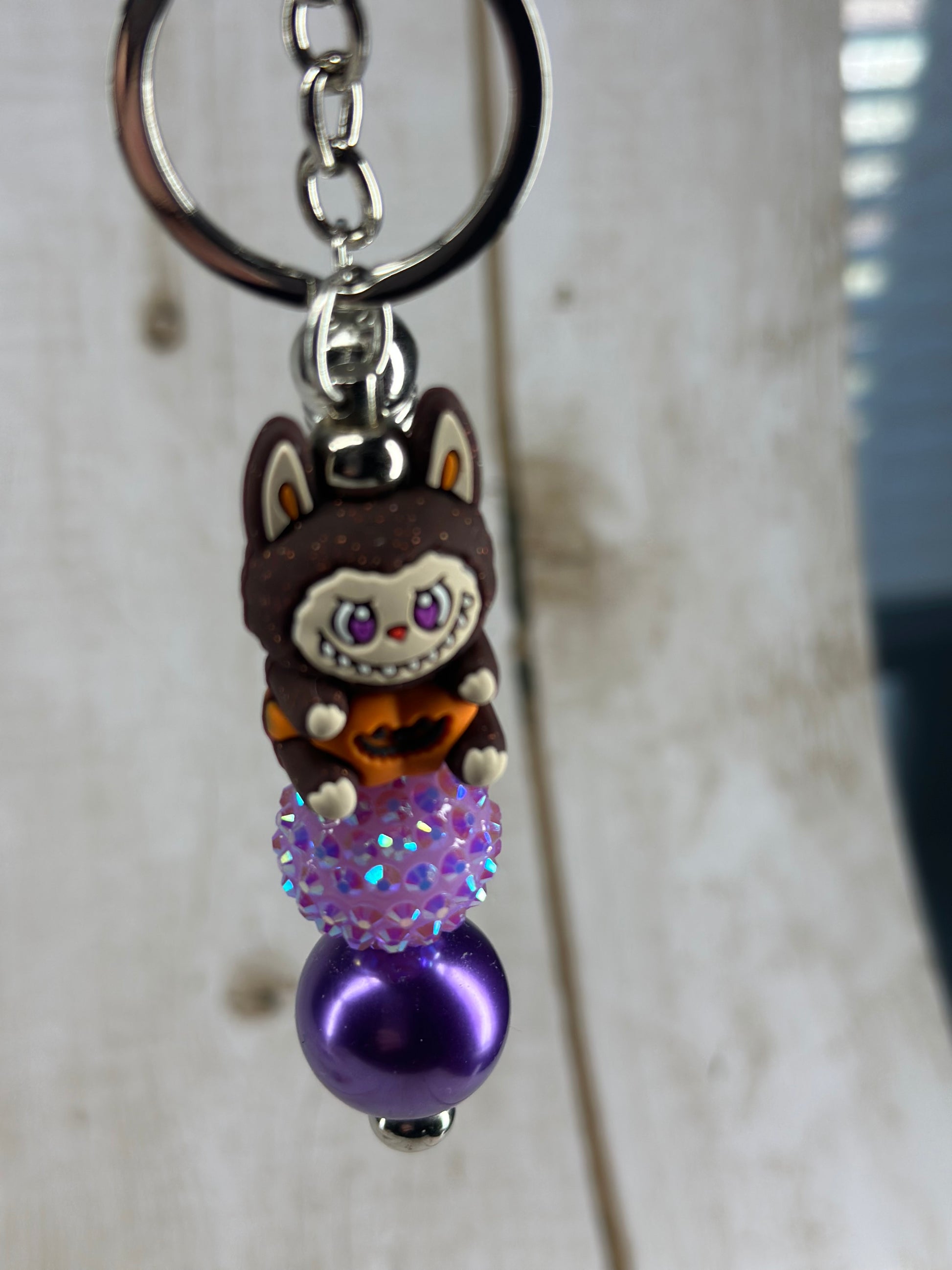Add a fun pop of color and character to your keys with our LaBuBu Keychain! Made with a silicone labubu charm, a stainless steel keychain, and a leather tassel, this keychain is the perfect accessory for any quirky individual. Plus, the 20mm purple bubblegum beads add a playful touch to your everyday carry. (No more boring keys!)