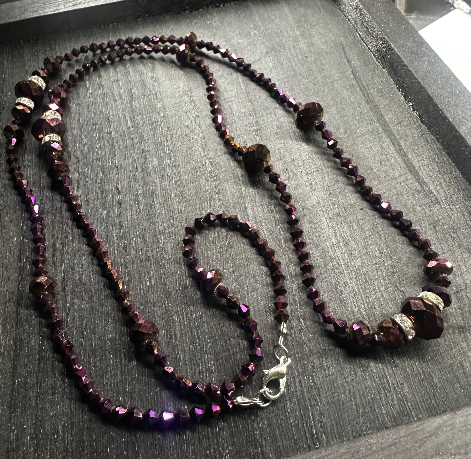 Unleash your inner fashionista with our Long Beaded Rope Style Necklace! Measuring at 34 inches, this necklace features stunning faceted Iridescent purple glass beads that add a pop of color to any outfit. Plus, it's hypoallergenic and nickel free, ensuring comfort and style for all. Elevate your look with this must-have accessory.