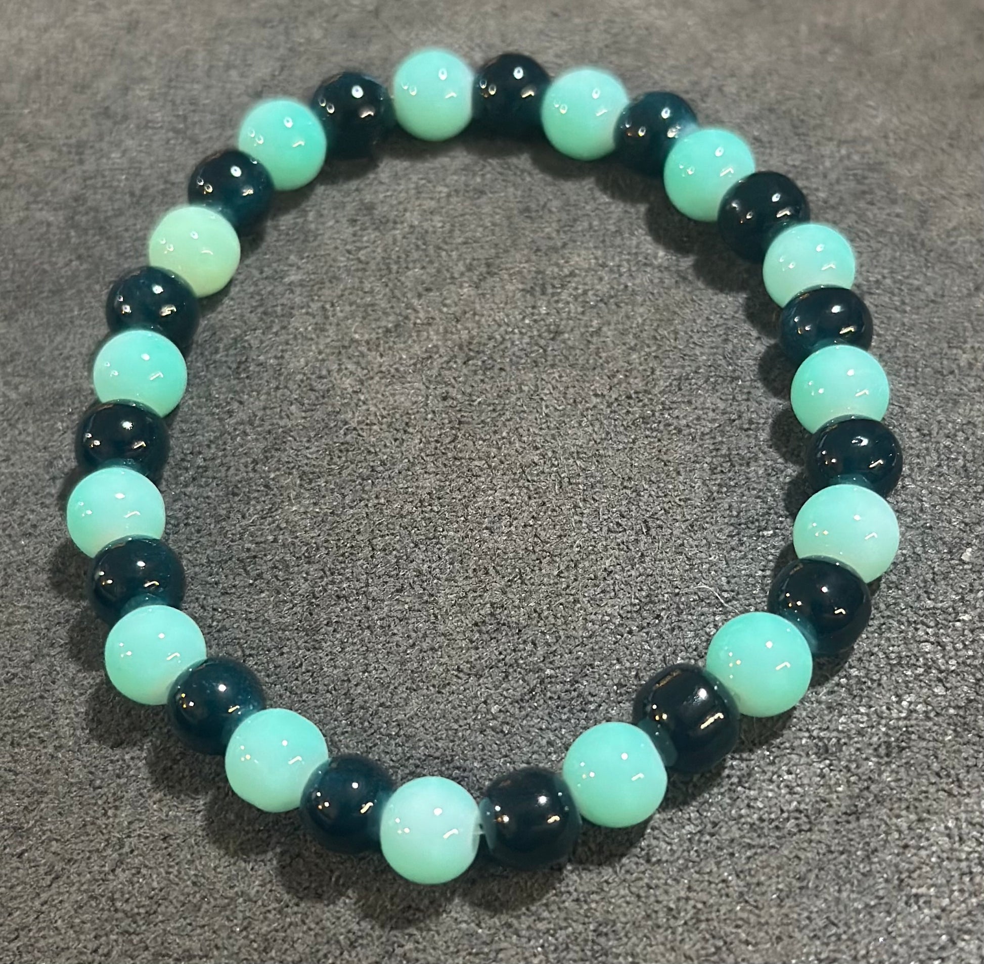 Navy Blue and Teal Blue Glass Bead Bracelet